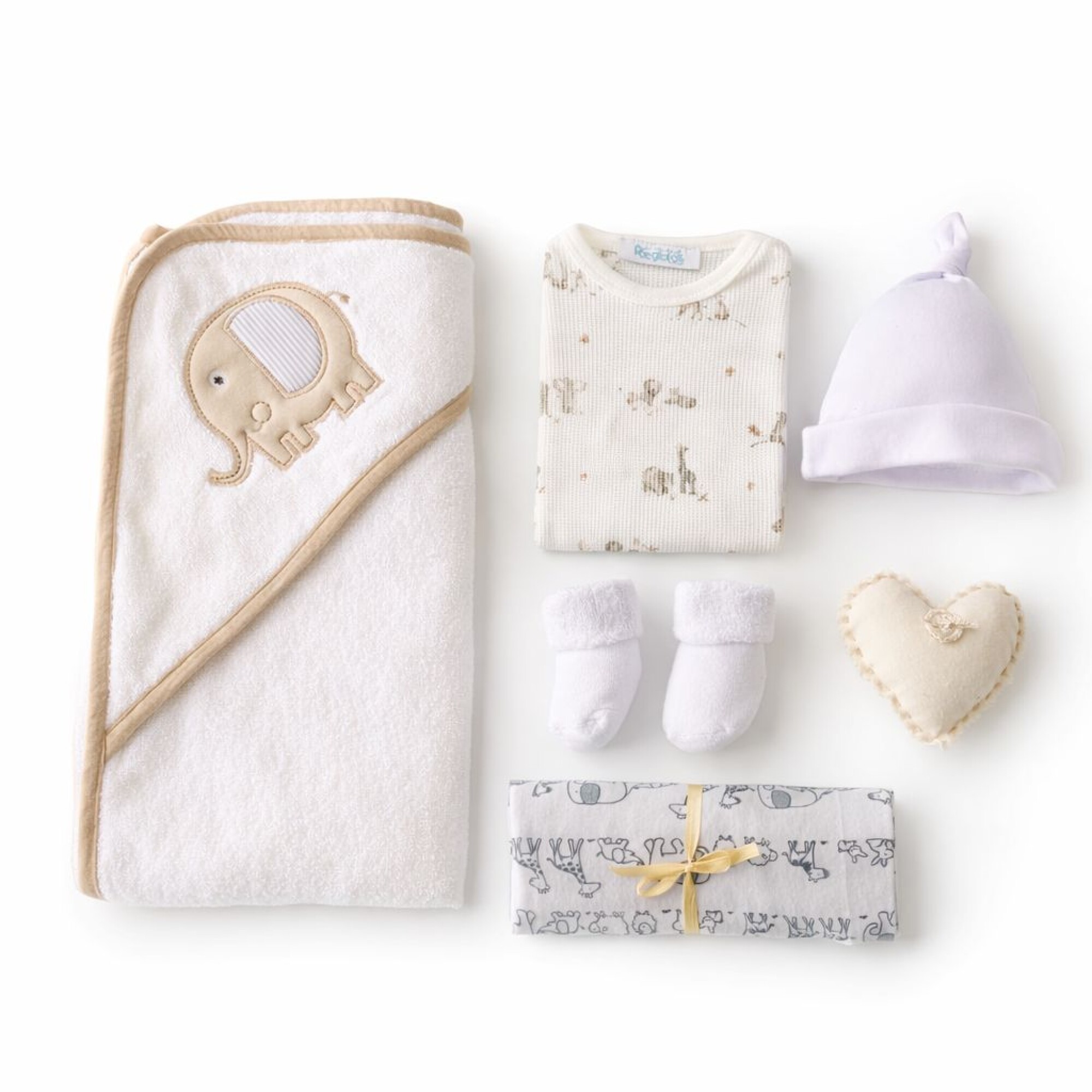 Completo ajuar neutro ideal para regalo empresarial, ya que se elige una propuesta para ambos sexos.