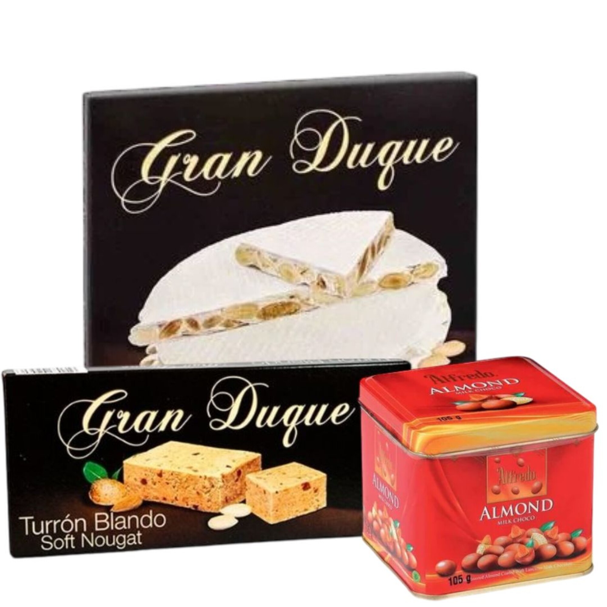 Presentado en caja tipo valija con diseños fiestas color kraft o blanco de 20x20x35cm
