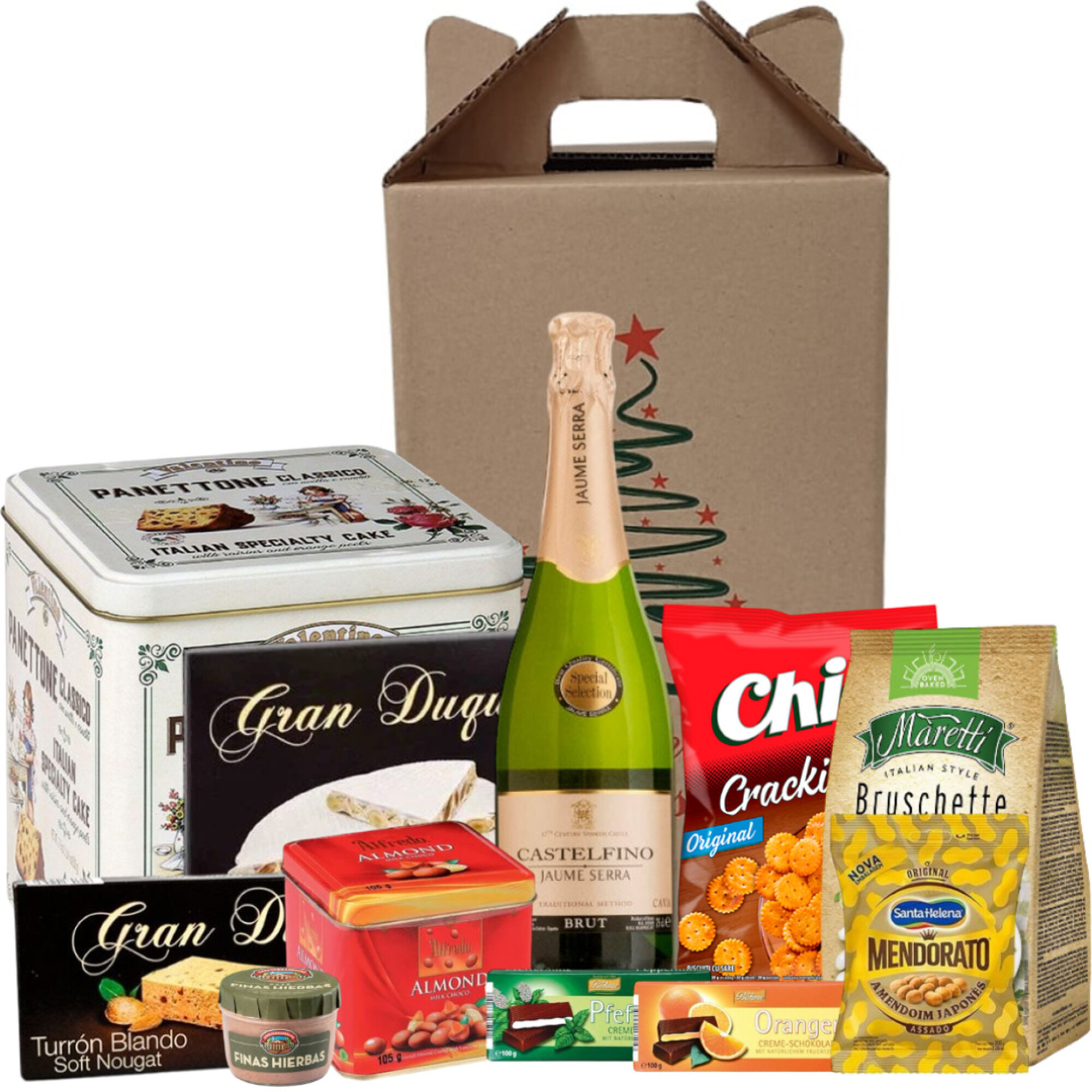 Mix de productos gourmet para fiestas, pensado para transportarse facilmente.