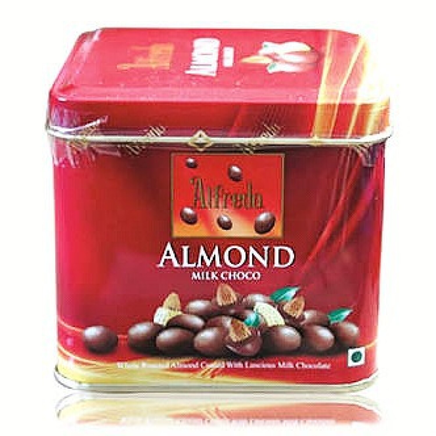 Alfredo -almendras bañadas de chocolate en lata 105g