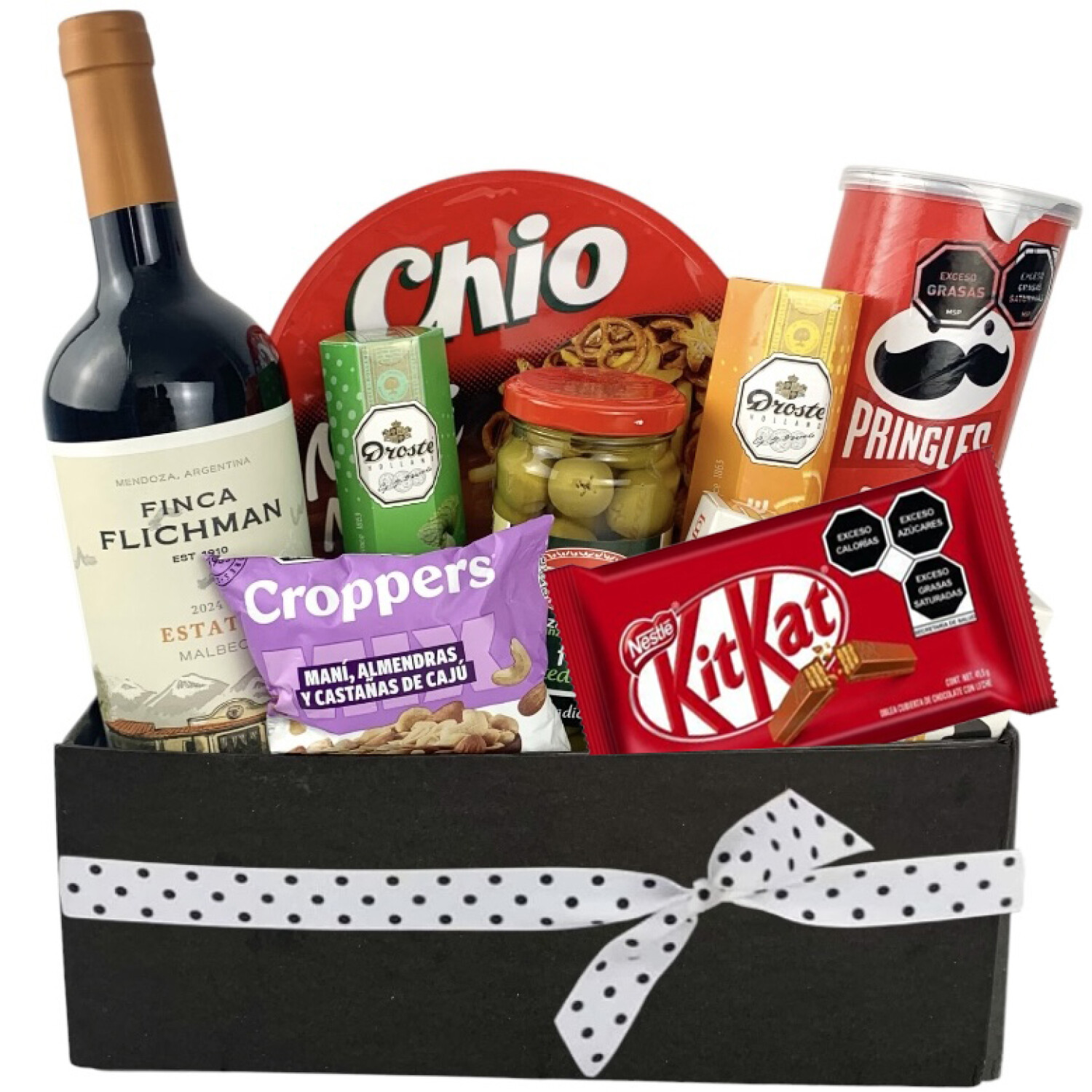 Una propuesta de canasta regalo para aquellos que les gusta el vino, en este caso Hereford- Argentino.